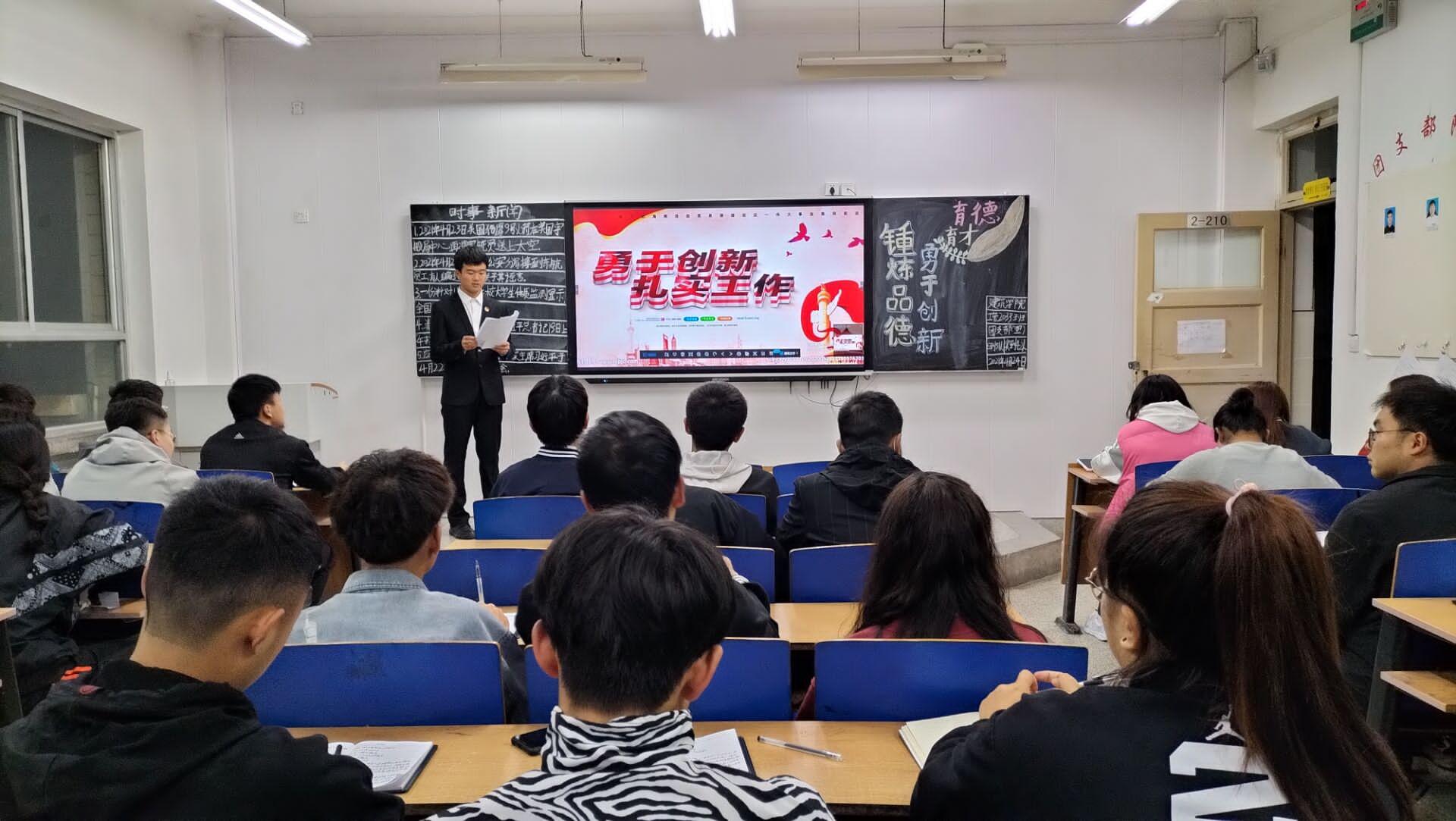 各班团支书通过PPT演示和演讲的方式向同学们宣读了习近平总书记讲话原文,同学们积极参与提问和交流,并认真记录。习近平总书记在讲话中对新一代青年提出了要肩负历史使命,坚定前进信心,立大志、明大德、成大才、担大任,努力成为堪当民族复兴重任的时代新人,让青春在为祖国、为民族、为人民、为人类的不懈奋斗中绽放绚丽之花的期望和嘱托。