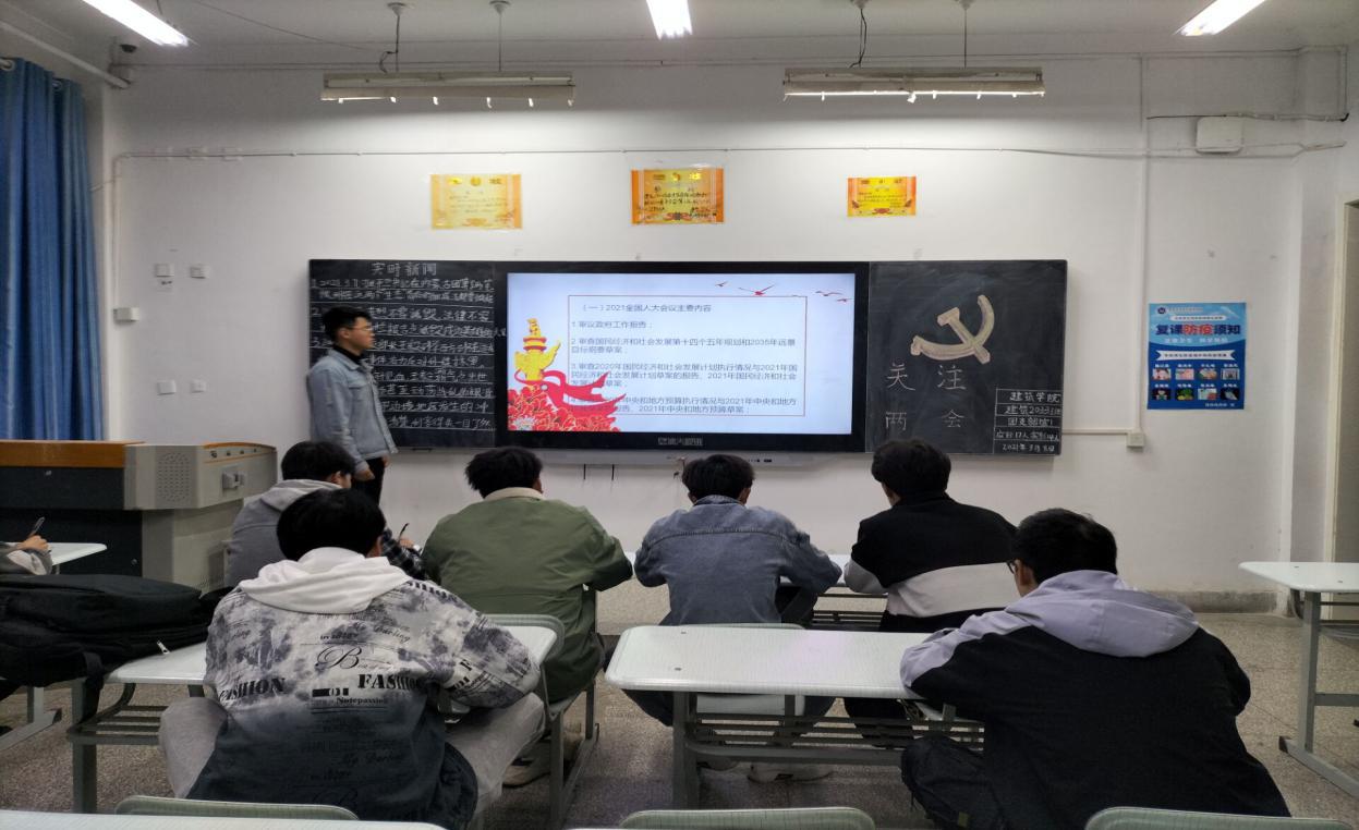 为深入领会两会精神,充分调动员工学习积极性、引导员工关注社会、关注民生,不断增强思想政治理论素养。beat365在线体育团总支于2021年3月9日晚,在二号教学楼开展学习“学习两会精神”主题团课,团课由各班团支书主持,20级全体员工参加。