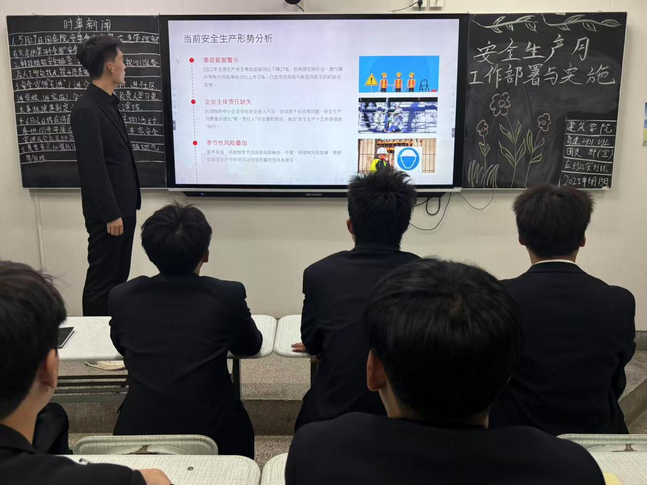 在互动研讨环节,同学们围绕建筑项目安全风险评估、老旧建筑改造安全等问题与主持人展开深入交流。在小组讨论中,大家结合自身专业知识和实践经验,分享对安全生产的认识和建议,现场气氛热烈。