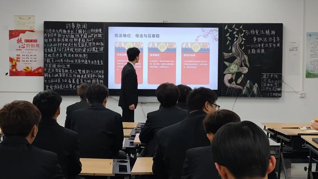 通过这次主题学习活动,同学们筑牢了法治理论基础,又明晰了专业领域的法治要求,取得了良好的教育效果。大家纷纷表示:会将将宪法精神内化于心、外化于行,以专业赋能法治建设,用实际行动为法治社会与行业高质量发展注入青春动能。