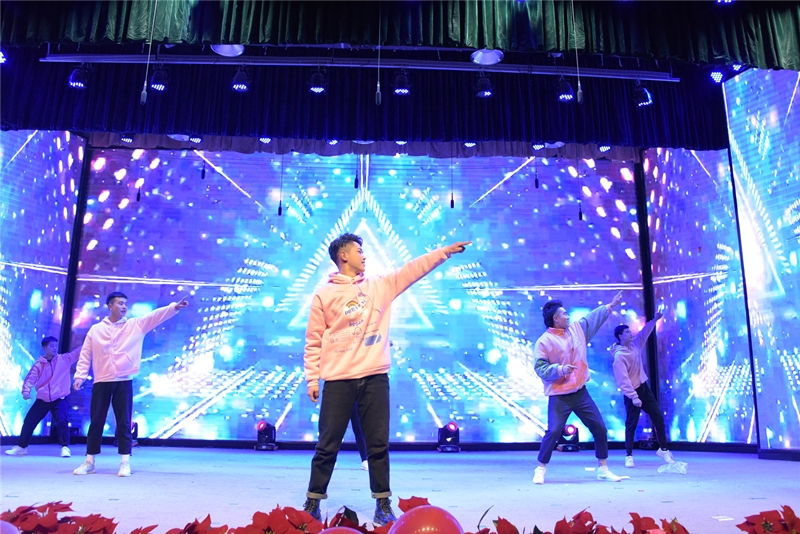 表彰结束后,元旦文艺汇演正式拉开了帷幕。晚会共有十五个节目,激情的演唱、火热的舞蹈、风趣的小品等各类节目轮番上映,让人眼花缭乱。晚会现场,节目异彩纷呈,气氛热烈,处处洋溢着青春活力。现场观众的掌声、欢呼声将晚会一次又一次推向高潮。