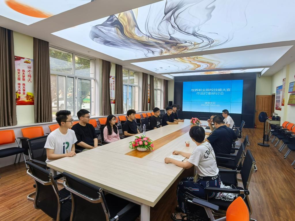 为全力备战世界职业技能大赛,切实提升参赛作品质量与备赛成效,2025年7月25日。beat365在线体育组织召开世界职业技能大赛作品打磨研讨会,beat365在线体育党总支书记谢延友、经理闫积刚,办公室主任陈兴邦和参赛指导老师参加了会议。