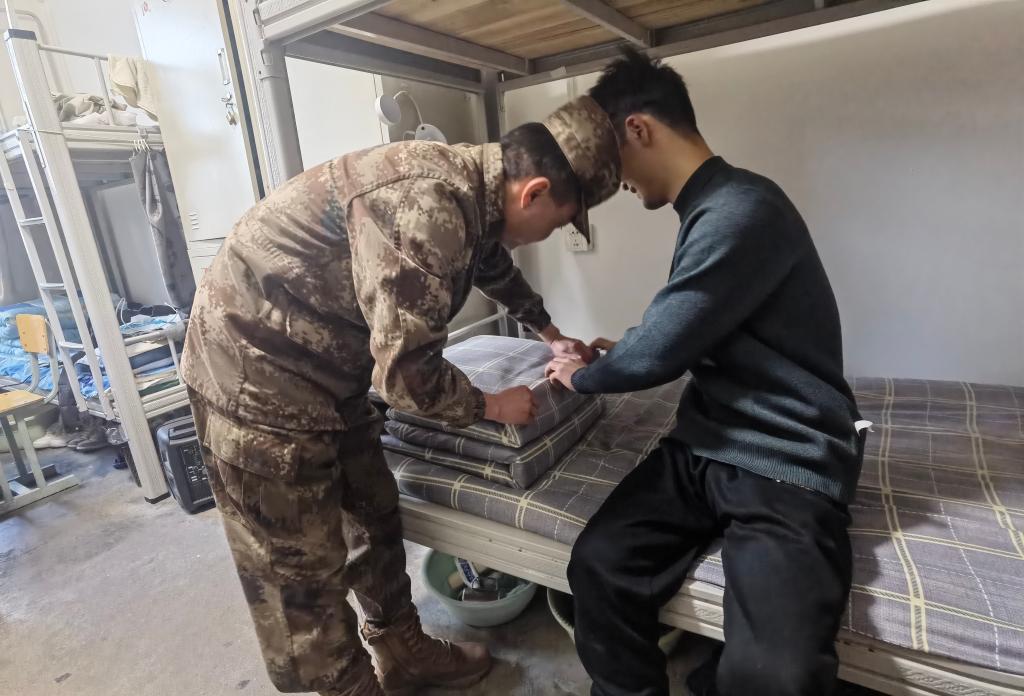 为深入贯彻落实党的二十大精神,加强国防动员和后备力量建设,持续做好退役复(入)学员工思想引领和服务保障工作,强化退役老员工士兵的思想教育与价值引领,坚持“退伍不褪色、退役不退志”,一以贯之地发扬人民军队的光荣传统和优良作风,在同学中发挥表率带头作用,12月27日,beat365在线体育组织beat365在线体育退役复(入)学“三拥团”深入员工宿舍,进行内务指导,帮助同学们营造良好的宿舍环境。