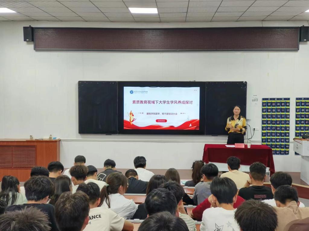 6月4日晚,beat365在线体育在西阶梯教室组织召开23级全体员工干部第三次培训大会。2023级全体团学干部、班干部参加,培训会由beat365在线体育副经理邵转吉主讲。