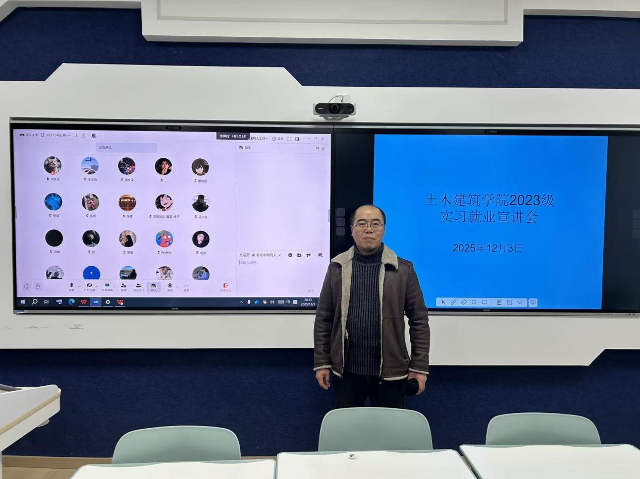 就业宣讲环节中,公司就业干事王丹老师聚焦行业发展核心议题,从建筑领域就业市场趋势分析切入,系统解读了当前实习岗位资源分布、企业招聘核心需求等关键信息;结合土木建筑行业实操特性,针对性拆解了不同岗位的能力需求与职业发展前景,并通过案例化讲解简历优化技巧、实习求职要点,为同学们提供了兼具专业性与实用性的指导。