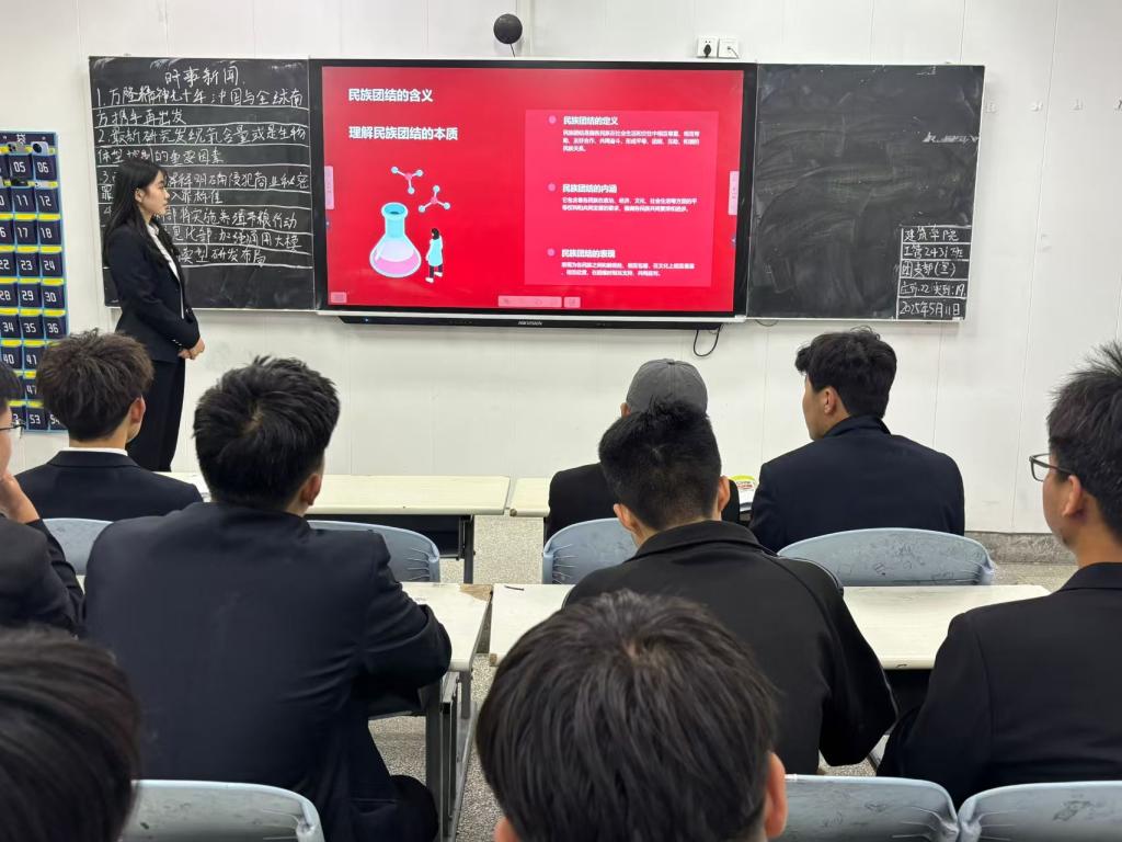 在互动环节,同学们踊跃发言,分享自己在校园中与不同民族同学相处的温暖故事,以及自己对民族团结的理解和感悟。同学们还一起讨论在日常生活中如何促进民族团结,提出要尊重各民族风俗习惯、加强文化交流活动等诸多宝贵建议。