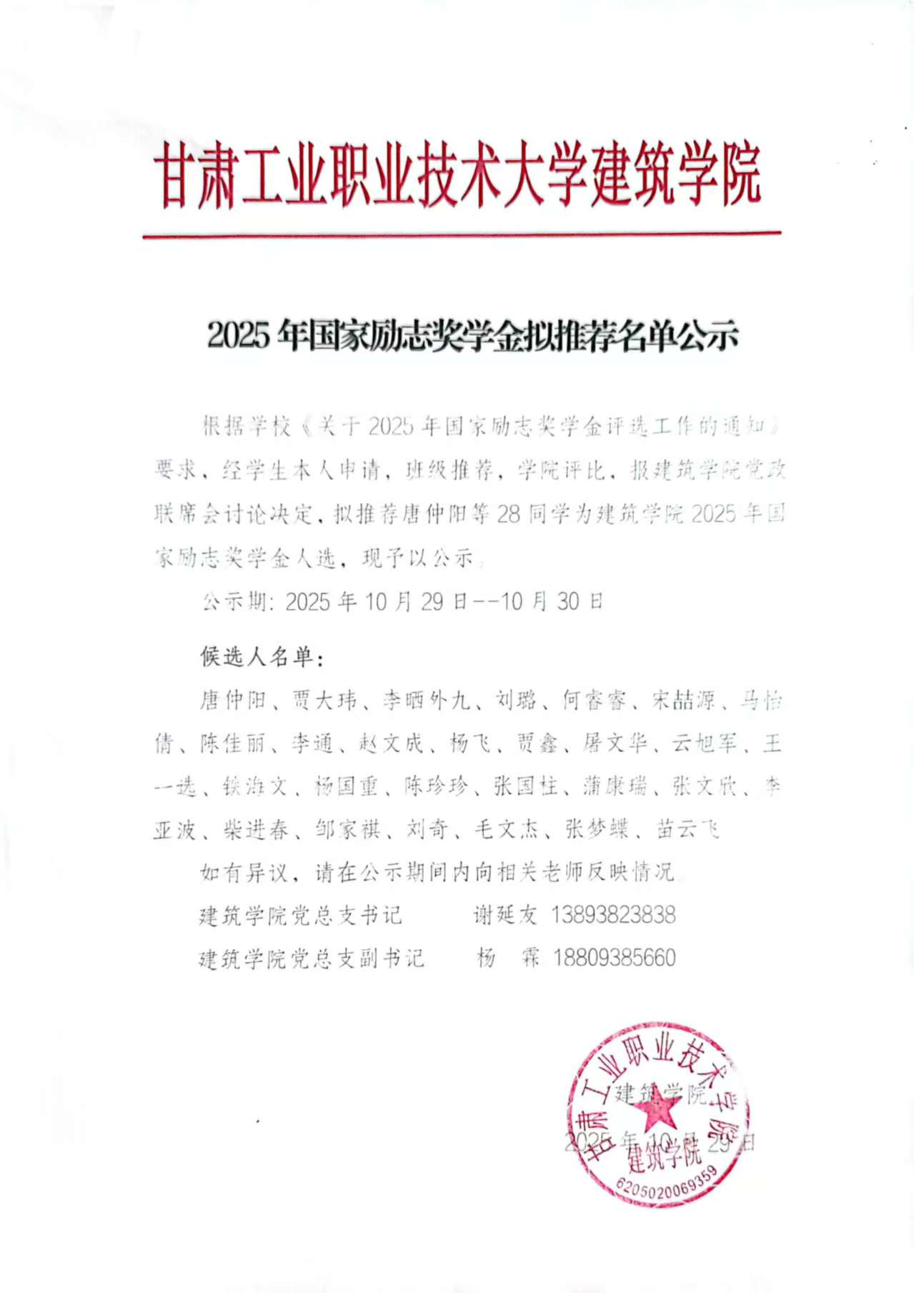 beat365在线体育2025年国家励志奖学金拟推荐名单公示
